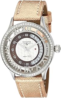 Reviews Swisstek Men's 2020 Swiss Mechanical, Diamond Watch Stainless Steel Automatic Dress Leather Calfskin Strap, Metallic, 22 (Model: SK52712GMG)
